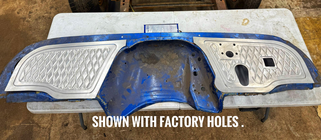 1967-1972 Deluxe pleated design #3 firewall panels . These panels extend the passenger side area to parallel the driver side so they are the same side .Made of 18 steel .  Requires passenger channel to be extended . Channel extension kit available as an option .